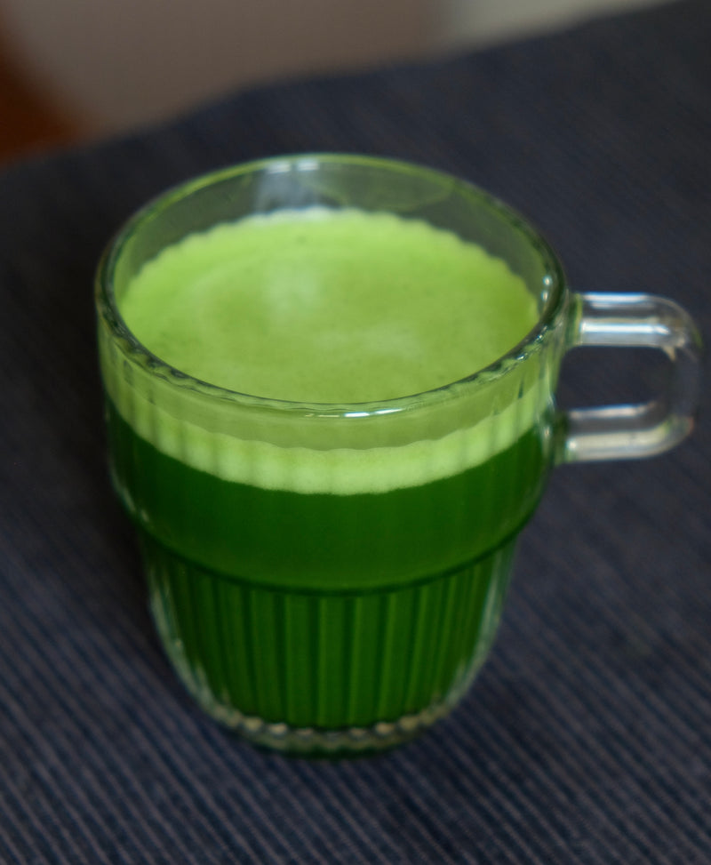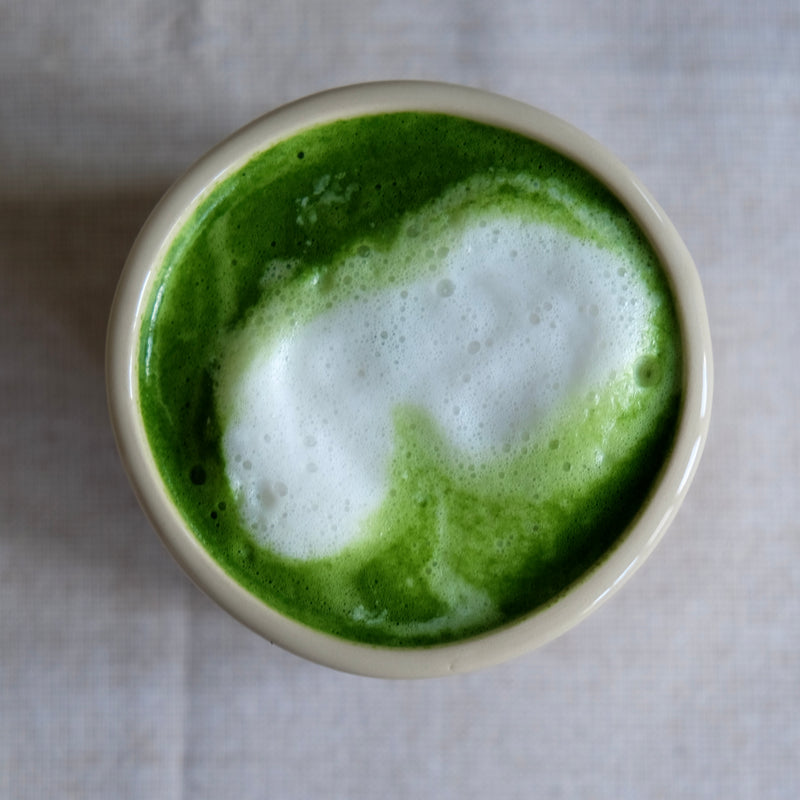 The greenness of your drink often also has to do with the type of milk used, not only the amount of matcha used. Cow's milk tends to cover a lot of the green color, the same goes for some almond milks. With oat and cashew it stays quite neutral and coconut milk does not cover at all and shines the beautiful green of the matcha through.