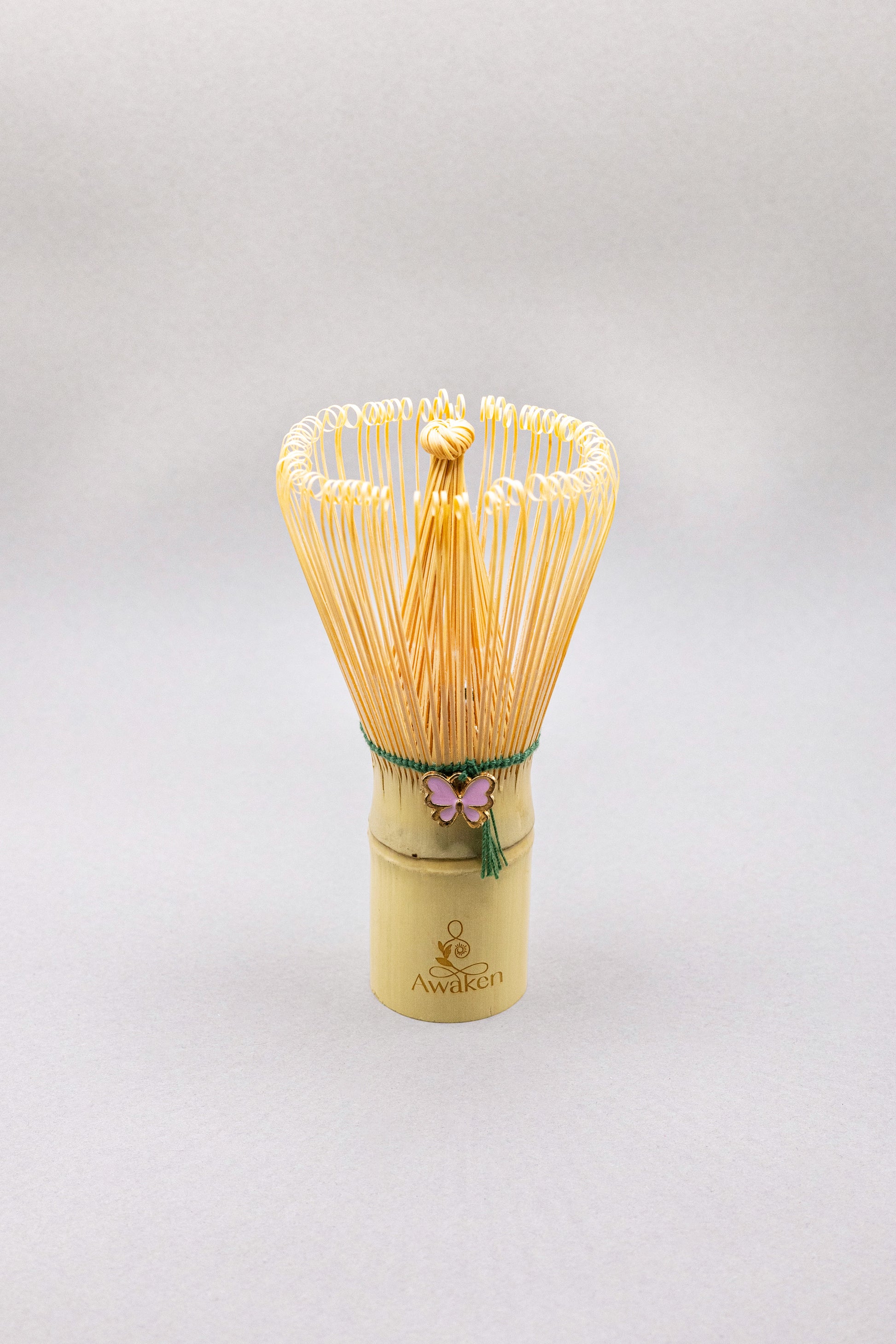 The chasen is more than a whisk, it is the tool that transforms preparing matcha into a true ritual. Handcrafted from organic bamboo and shaped with 100 delicate prongs, it gently aerates the tea, creating the smooth froth that is at the heart of an authentic matcha experience. And this one is even more special, it's our Butterfly Chasen.